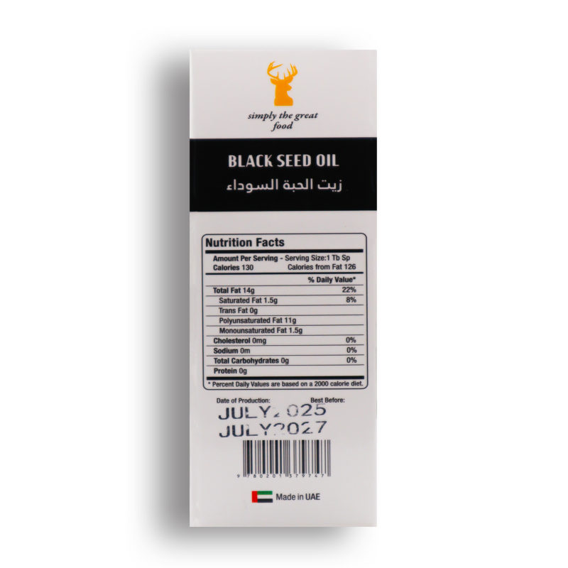 Ingredients: Freshly cold-pressed and unrefined virgin Black Seeds (Nigella Satvia) Oil (also known as Kalonji Oil in Hindi/Urdu)